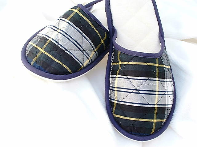 fabrics such as in towelling slippers, satin slippers, printed slippers or for pure luxury,